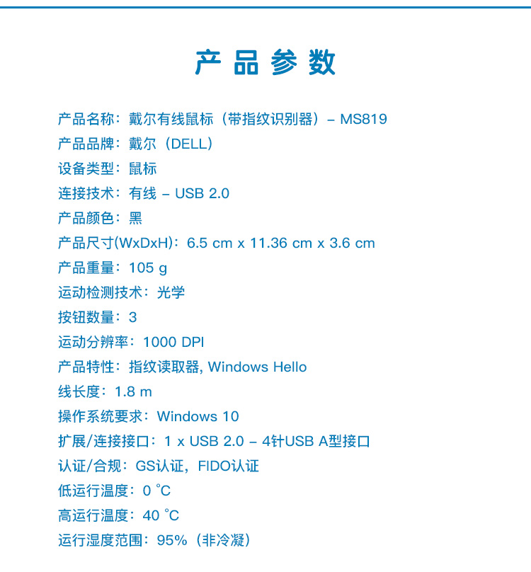 商品名稱:戴爾(DELL)MS819 鼠標有線 指紋識別鼠標 有線鼠標 筆記本/臺式機辦公 鼠標